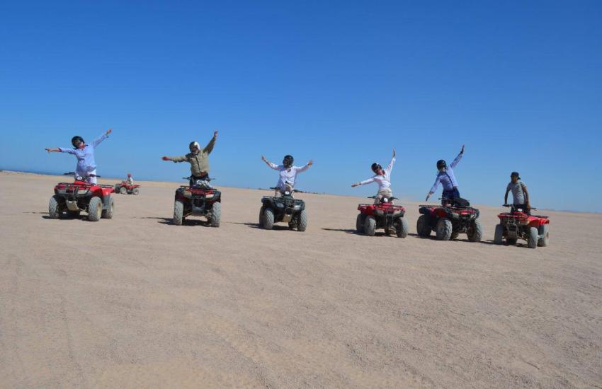 Super safari in Hurghada: jeep ride, 4-seat buggy, quad biking, camel ride, Bedouin village visit, dinner and traditional show.