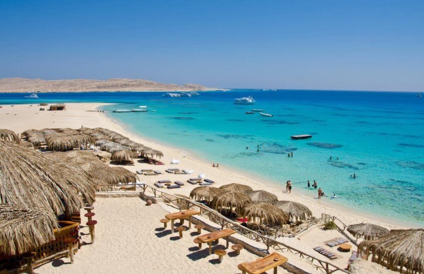 All-day Mahmya Island trip from Hurghada with island stay, open buffet lunch on the island, optional snorkeling stop, and hotel transfers.